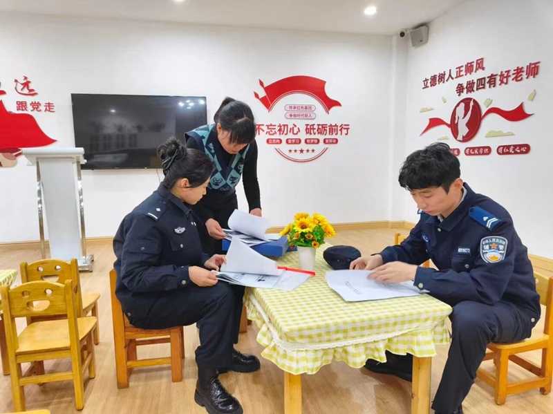为进一步加强辖区幼儿园安全防范意识,消除各类安全隐患。近日,东城分局天宝路派出所组织民辅警深入辖区幼儿园进行安全检查活动。 活动中,民辅警对幼儿园的门卫、保安制度、人员登记等管理制度的落实情况进行了安全检查,同时要求负责人要严格落实上下学期间门卫值守、检查制度,加强对校园出入人员、物品的安全检查与登记意识,严防不法人员进入校园。