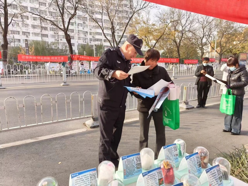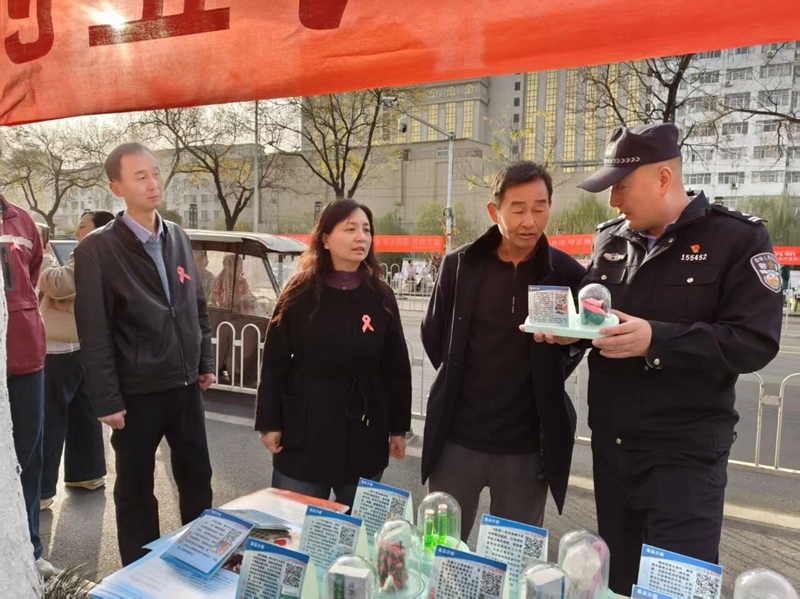 活动现场,民辅警通过设置宣传展台、展示仿真毒品模型、发放科普手册等形式,向过往市民群众面对面讲解防毒知识、毒品危害,并结合艾滋病防治知识,让群众认清“禁毒”与“防艾”的密切关联,引导大家树立 “珍爱生命、拒绝毒品、远离艾滋”的健康理念。