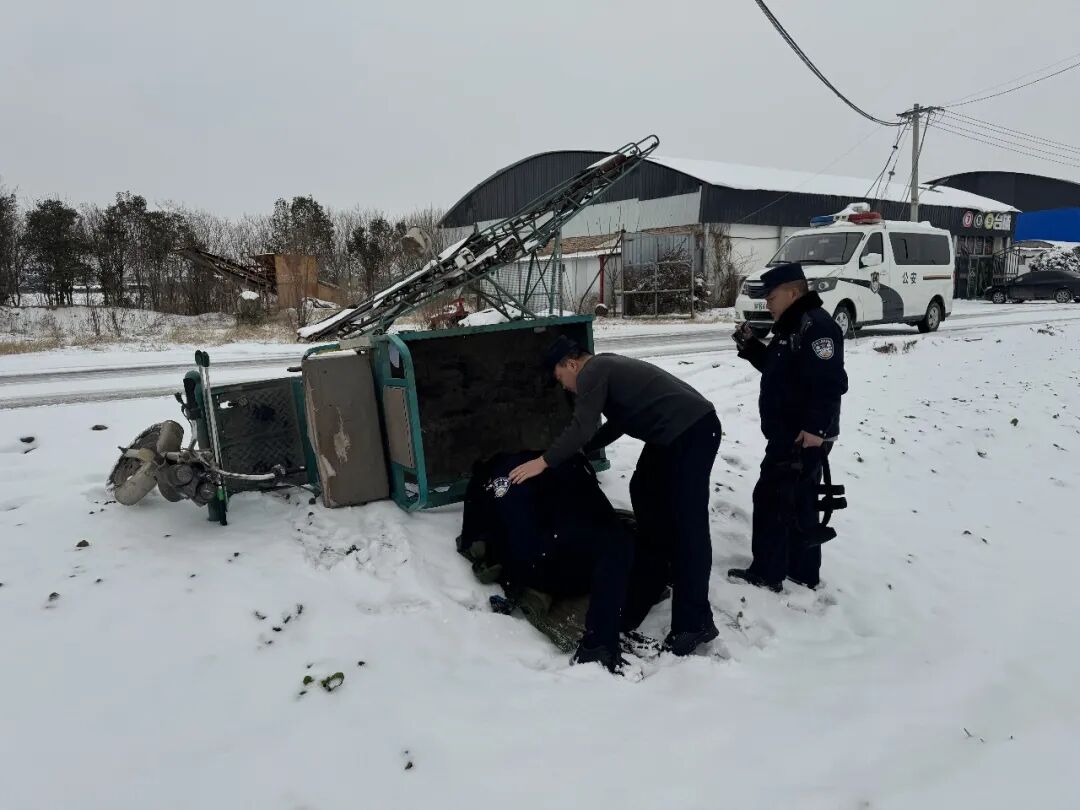 1月20日下午,鄢陵县公安局只乐派出所民辅警在辖区开展日常巡逻时,发现一辆三轮车侧翻在路旁沟内。民警立即上前查看,发现一名男子躺在车旁,衣着单薄、脸色苍白、嘴唇发紫,情况危急。