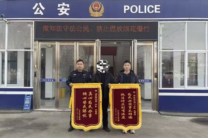 近日,群众郝先生将两面锦旗送到东城公安分局邓庄派出所,感谢民辅警尽心调解,帮他妥善化解矛盾纠纷。 此前,郝先生与他人产生纠纷,民辅警接警后迅速到场,先安抚双方情绪,再以情理结合法理的方式耐心沟通,梳理问题、引导双方换位思考。 经民辅警协调,双方放下分歧、握手言和。这两面锦旗,是群众对民辅警用心办实事的肯定,也是警民和谐的生动写照。